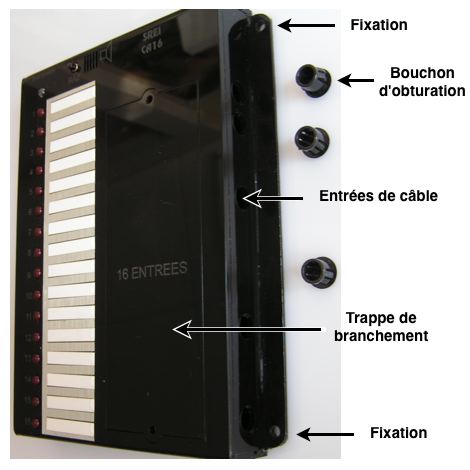 16 bornes sorties ( 16 bornes correspondantes aux entrées )